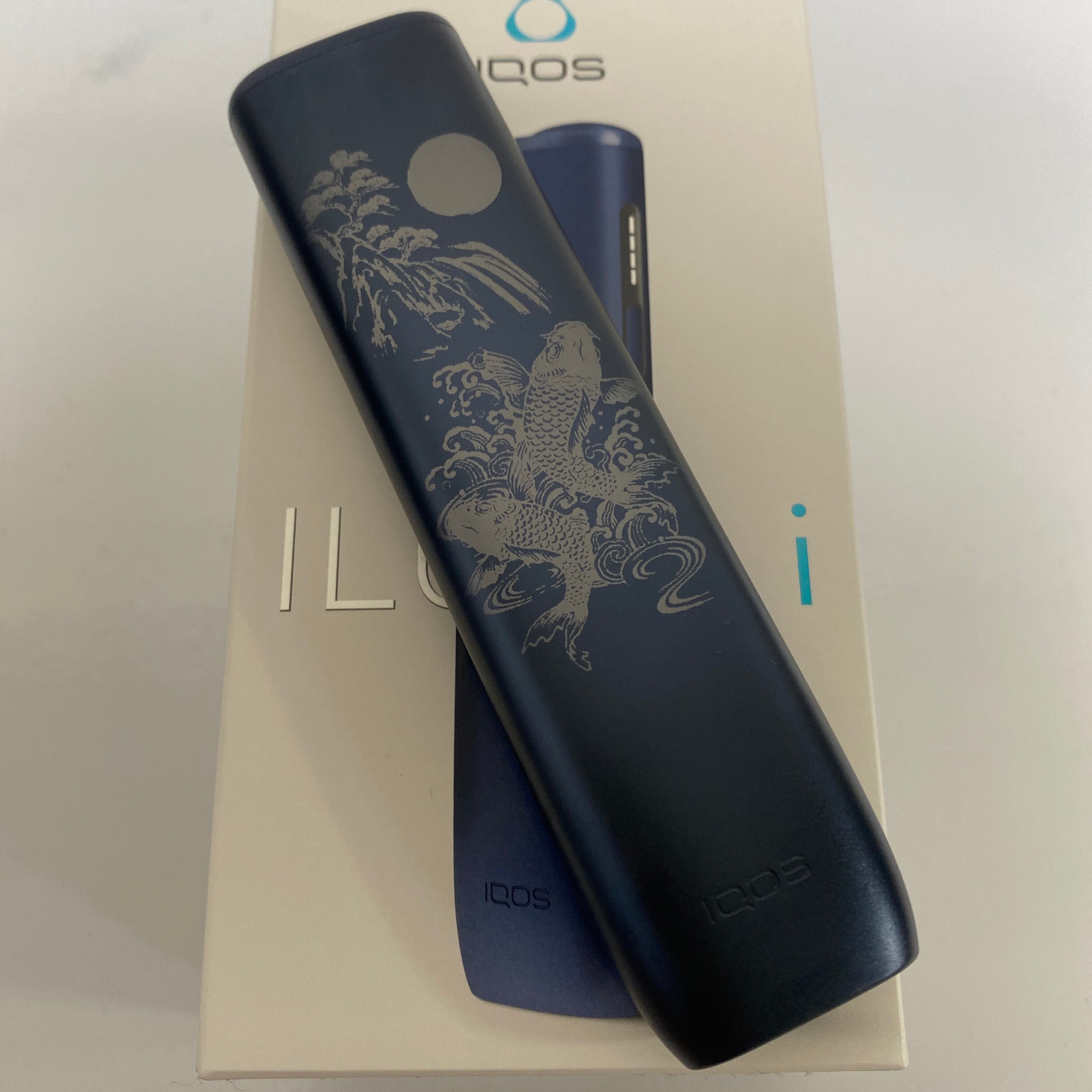 鯉 滝登り 加工 iQOS ILUMA i ONE アイコス イルマ i ワン ミッドナイトブラック 黒 和柄 和彫り 下り鯉 登竜門 川下り 新型 新品 未使用 送料無料 オリジナル カスタム