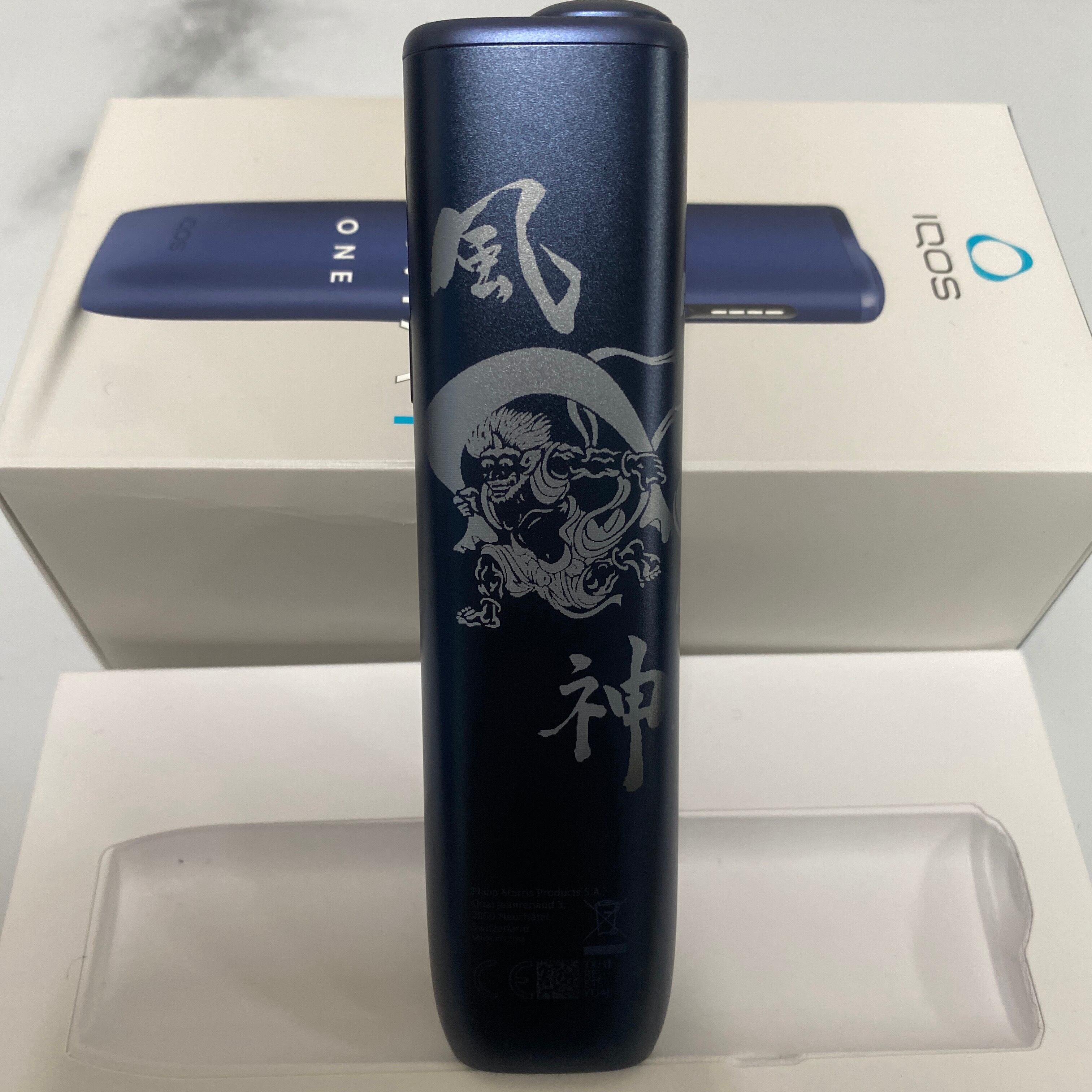 新型 風神 雷神 デザイン レーザー加工 iQOS ILUMA i ONE アイコス イルマ i ワン ミッドナイトブラック 黒 和柄 和彫り 三つ巴 入れ墨 刺青 入墨 タトゥー 新品 未使用 送料無料 オリジナル カスタム