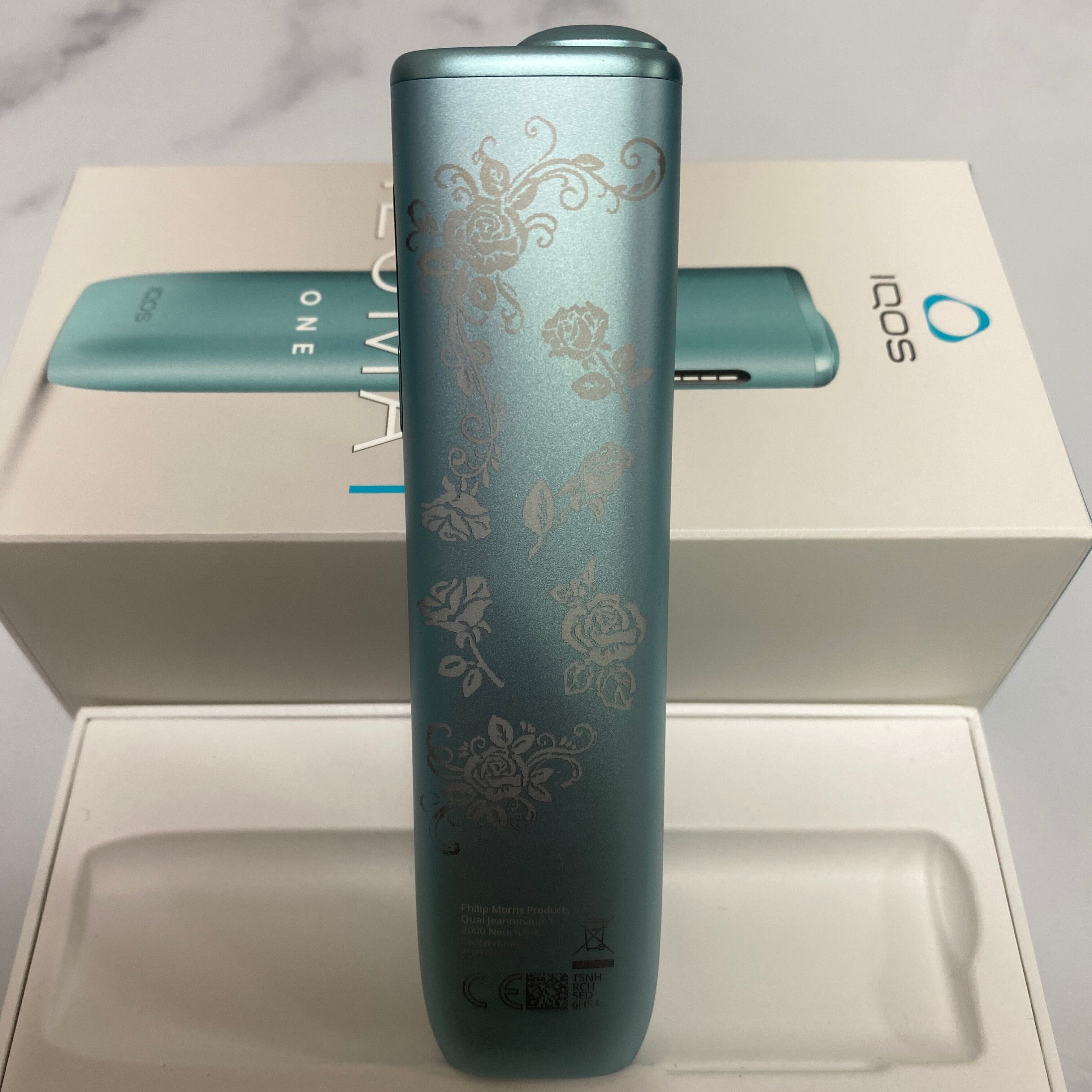 バラ デザイン iQOS ILUMA i ONE アイコス イルマ i ワン ブリーズブルー 青 新型 薔薇 ローズ 華 花 両面加工 新品 未使用 送料無料 オリジナル カスタム