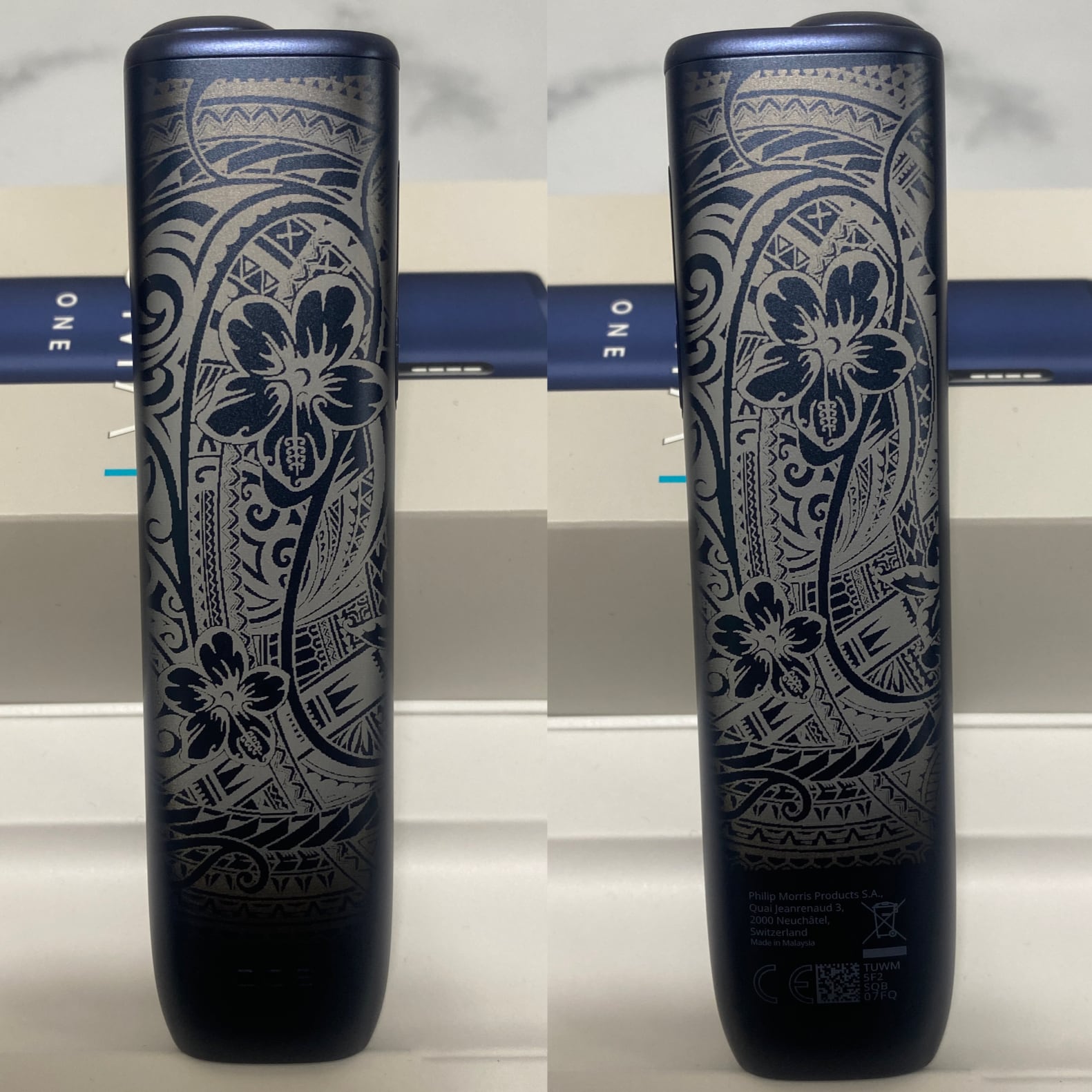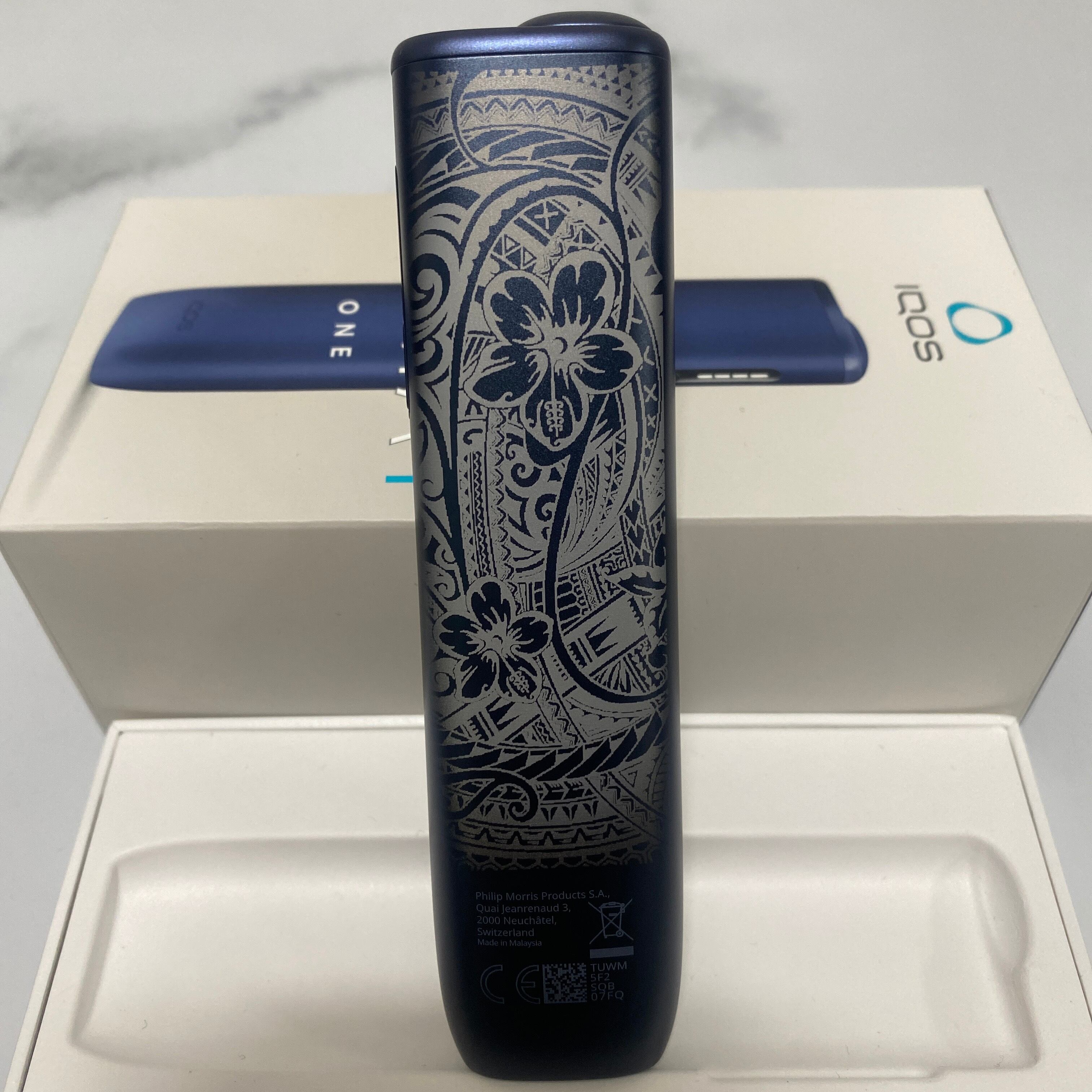 ハワイアン 加工 iQOS ILUMA i ONE アイコス イルマ i ワン ミッドナイトブラック 黒 ハイビスカス プルメリア ポリネシア タトゥー スクロール 新品 未使用 送料無料 オリジナル カスタム