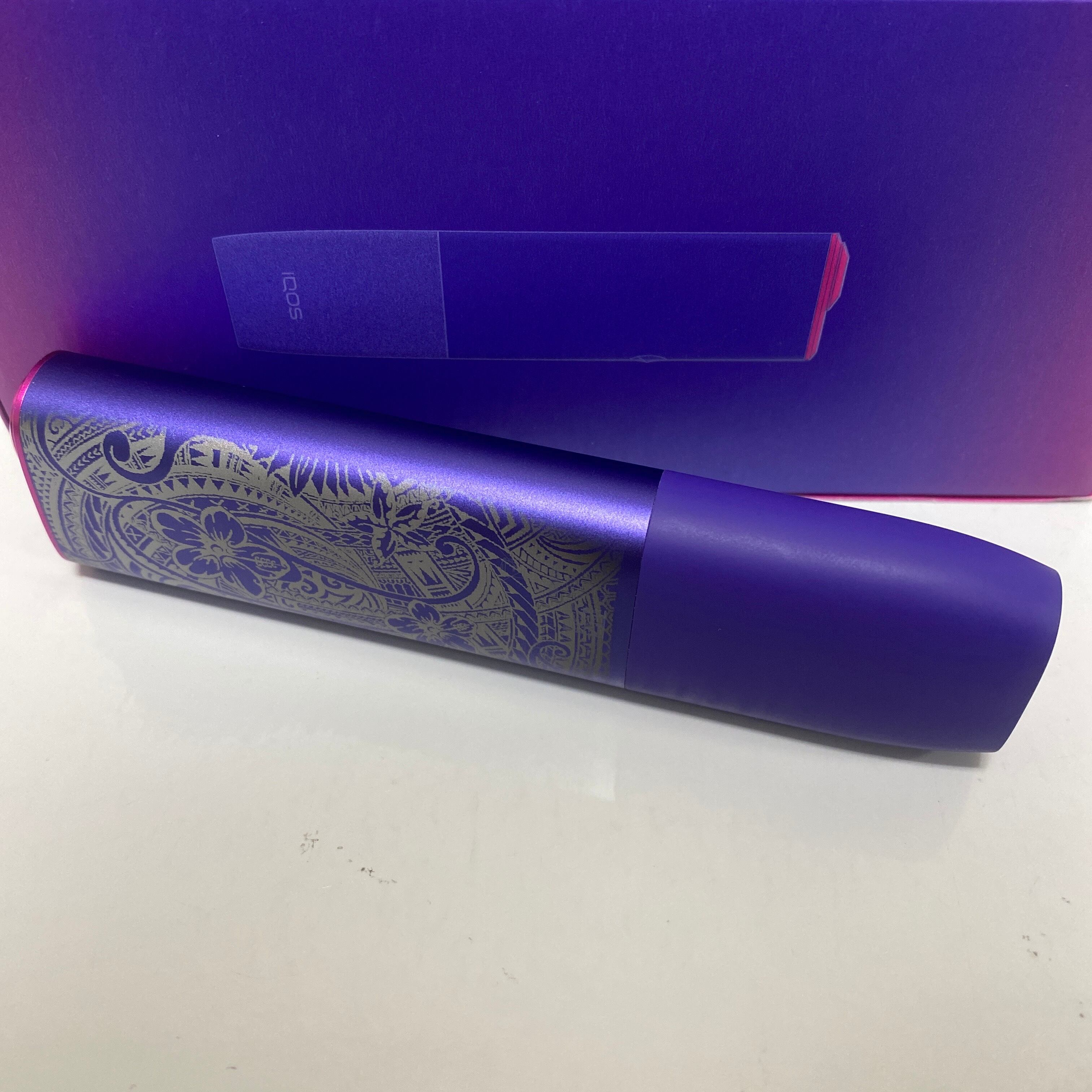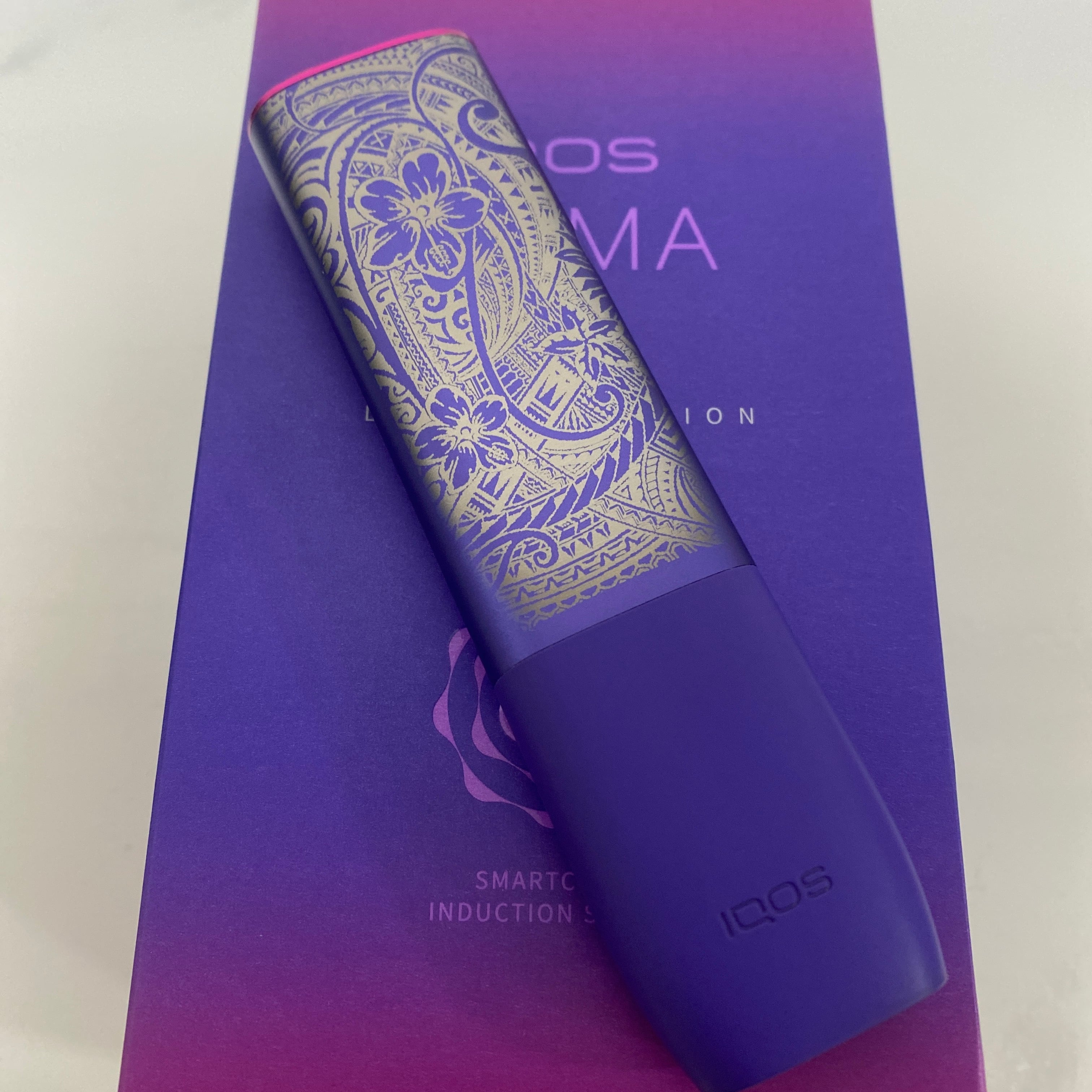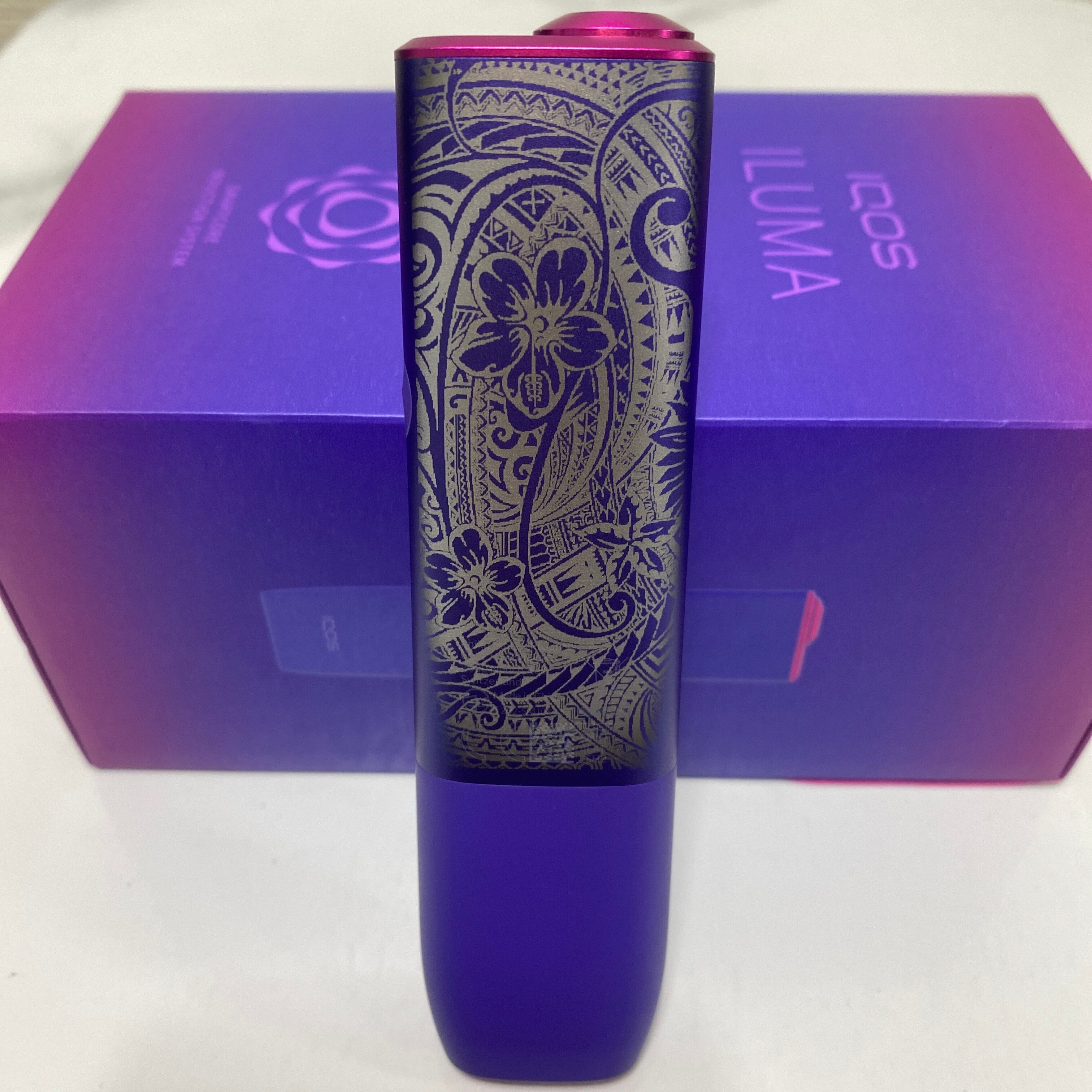 ハワイアン 加工 iQOS ILUMA ONE アイコス イルマ ワン ネオン 紫 ポリネシア ハイビスカス スクロール 華 花 新品 未使用 送料無料 オリジナル カスタム