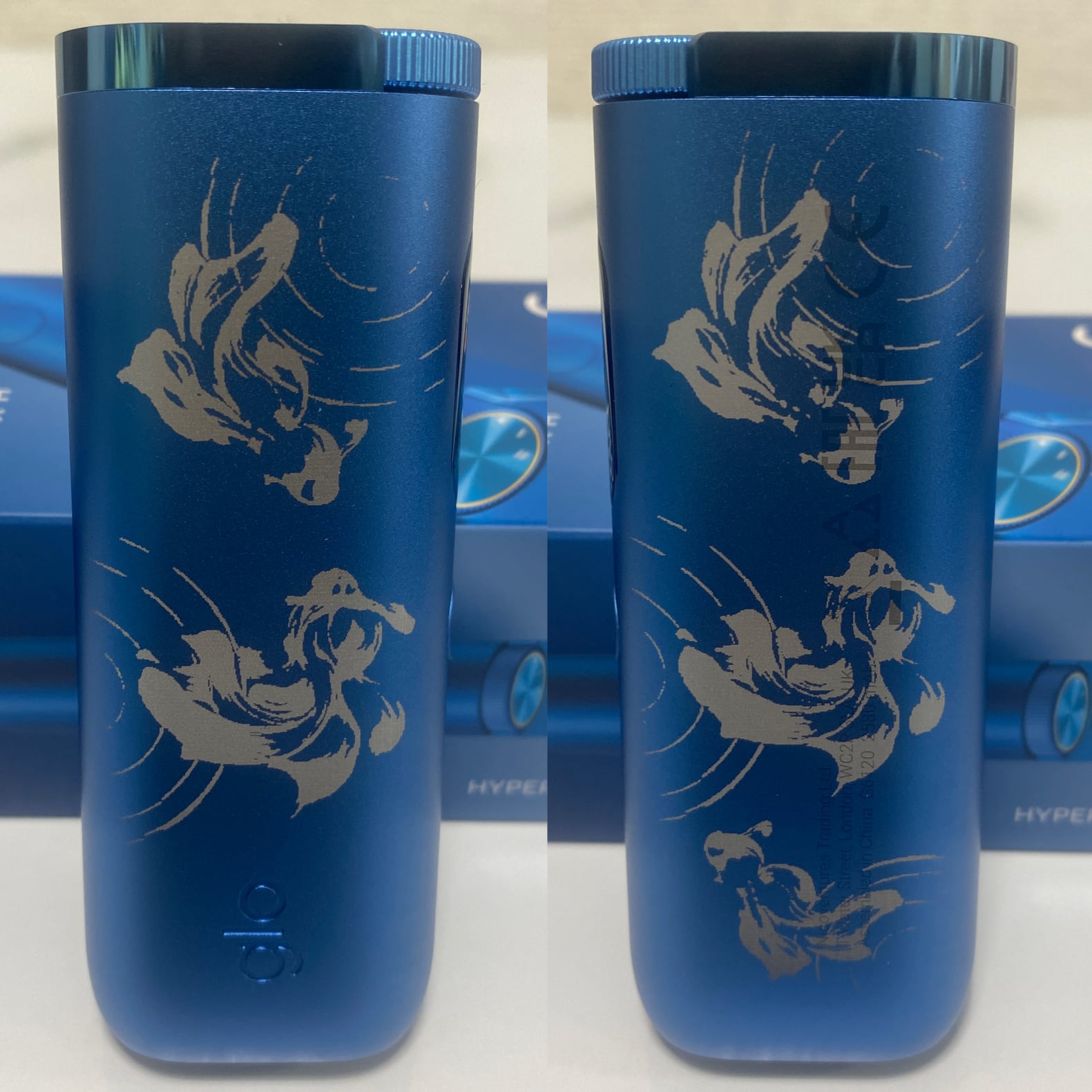 金魚 水墨画 加工 glo hyper pro グロー ハイパー プロ ラピス ブルー 青 和柄 シルエット 波紋 筆画 両面加工 新品 未使用 送料無料 オリジナル カスタム