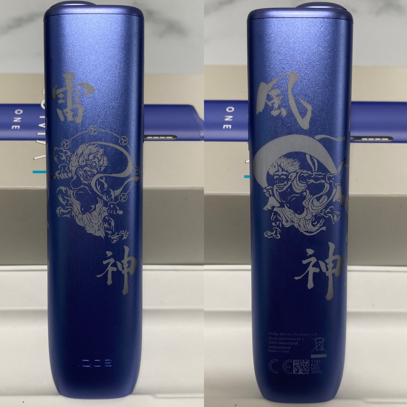 風神 雷神 加工 iQOS ILUMA i ONE アイコス イルマ i ワン デジタルバイオレット 紫 パープル 和柄 和彫り三つ巴 新品 未使用 送料無料 オリジナル カスタム