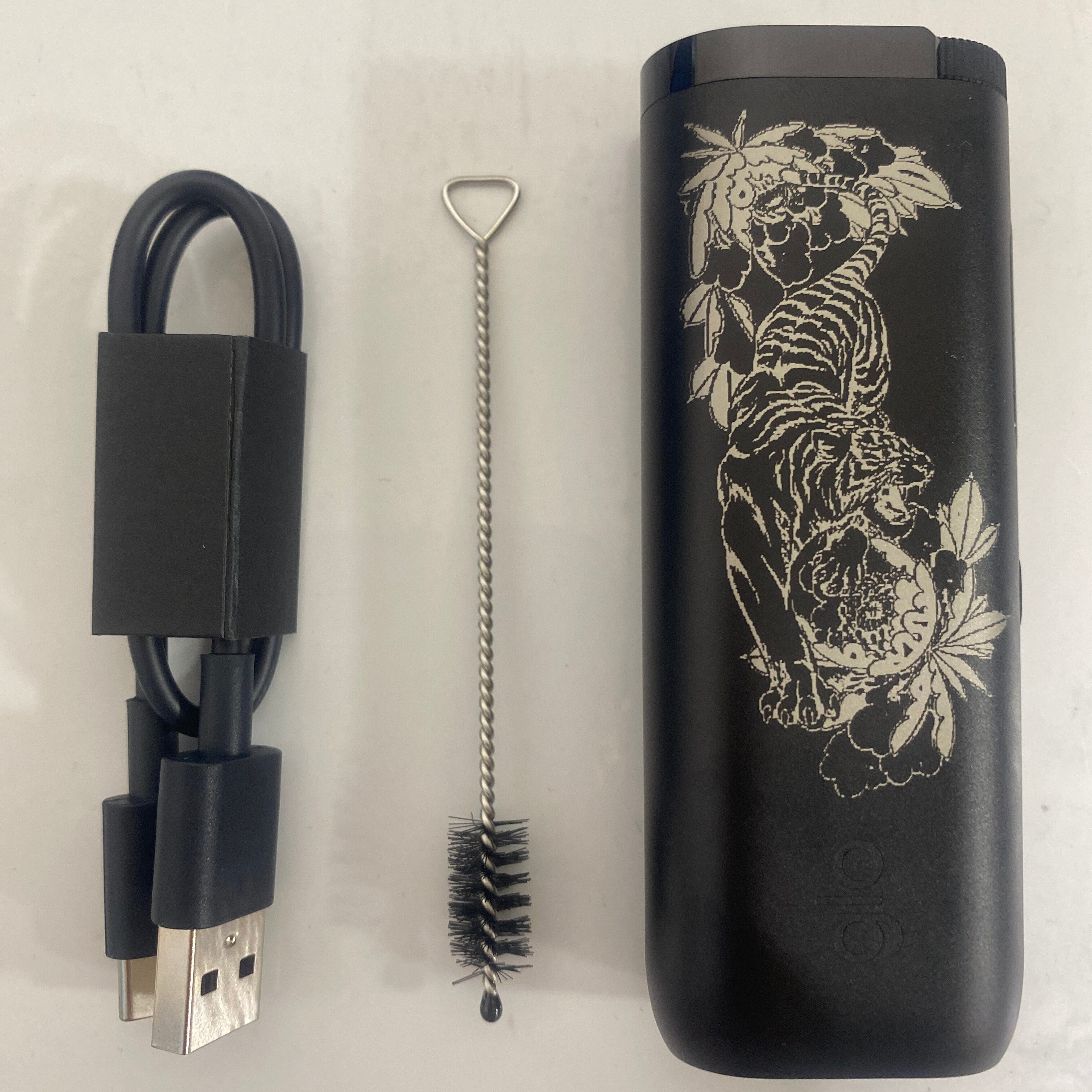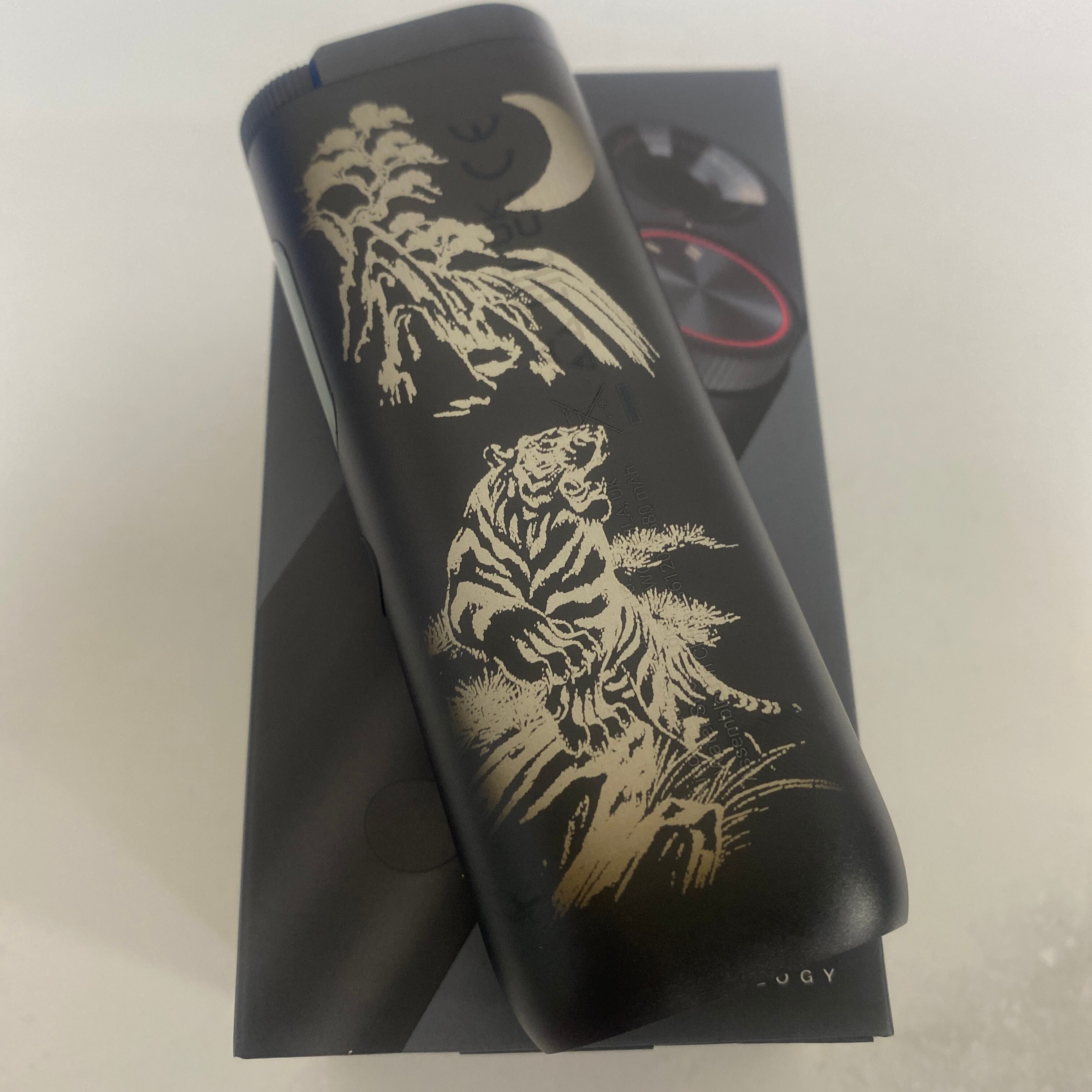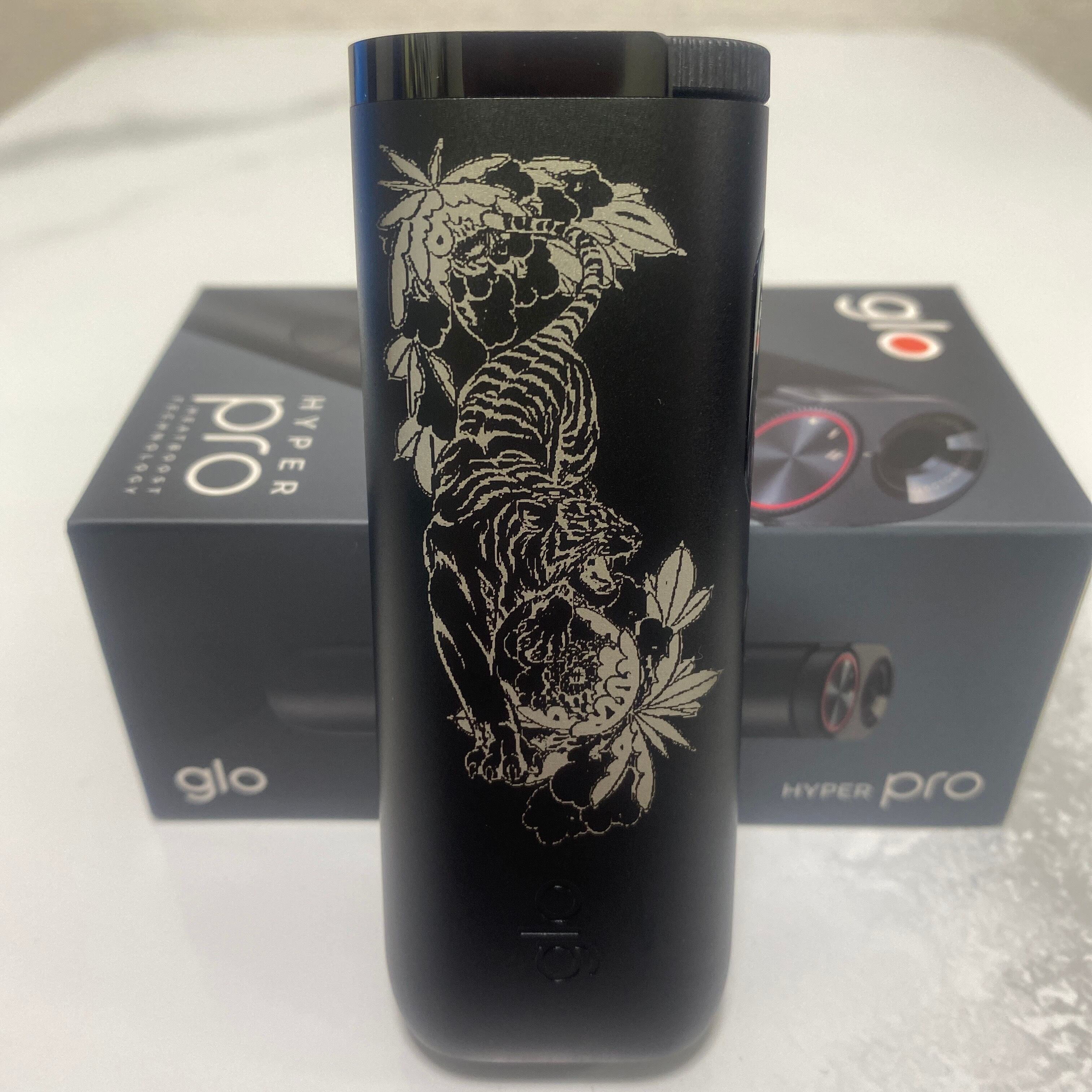 虎 両面 加工 glo HYPER pro グロー ハイパー プロ オブシディアン ブラック 黒 タイガー 猛虎 和柄 和彫り 三日月 水墨画 レーザー加工 新品 未使用 送料無料 オリジナル カスタム