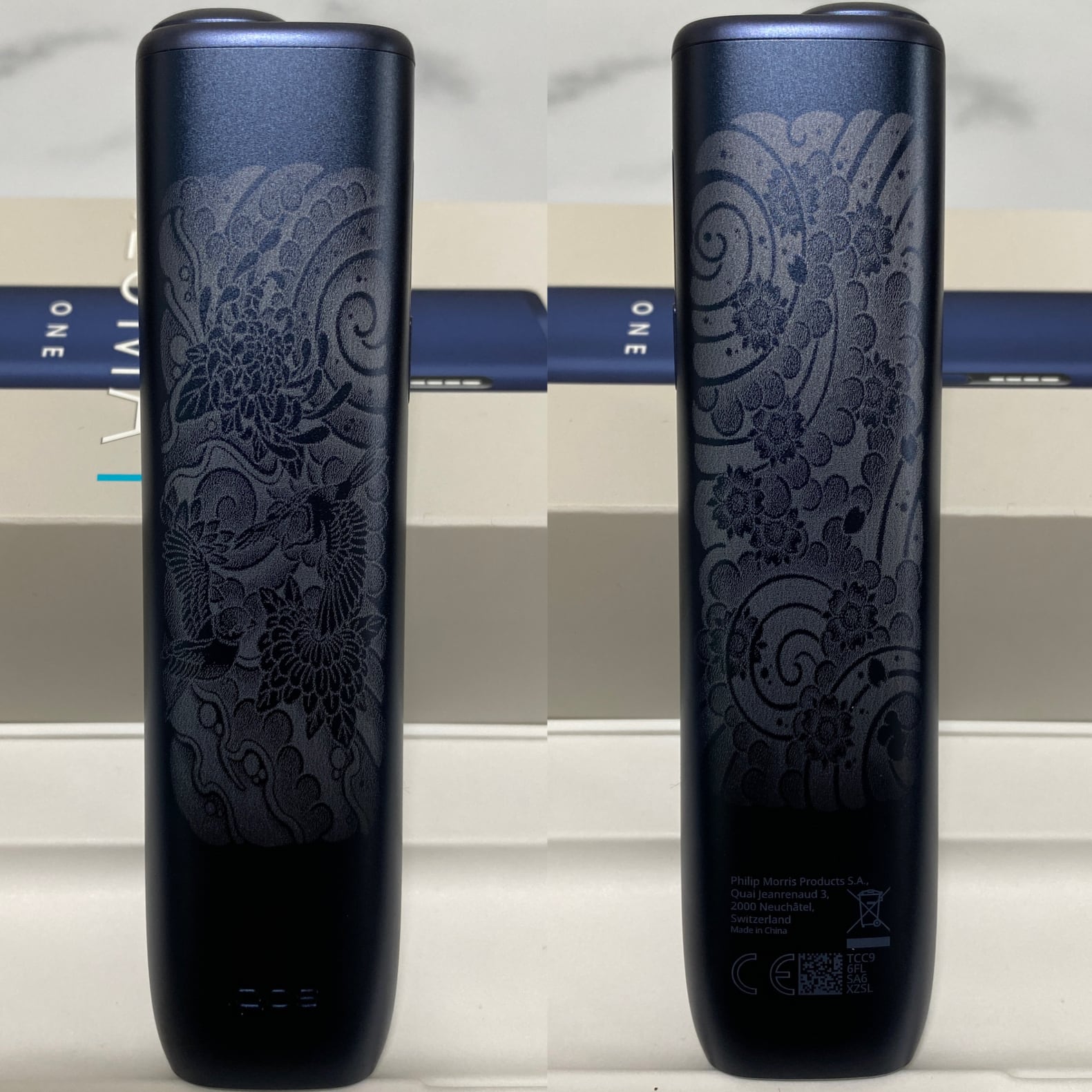 和柄 雀 菊 桜 加工 iQOS ILUMA i ONE アイコス イルマ i ワン ミッドナイトブラック 黒 和彫り すずめ 新品 未使用 送料無料 オリジナル カスタム