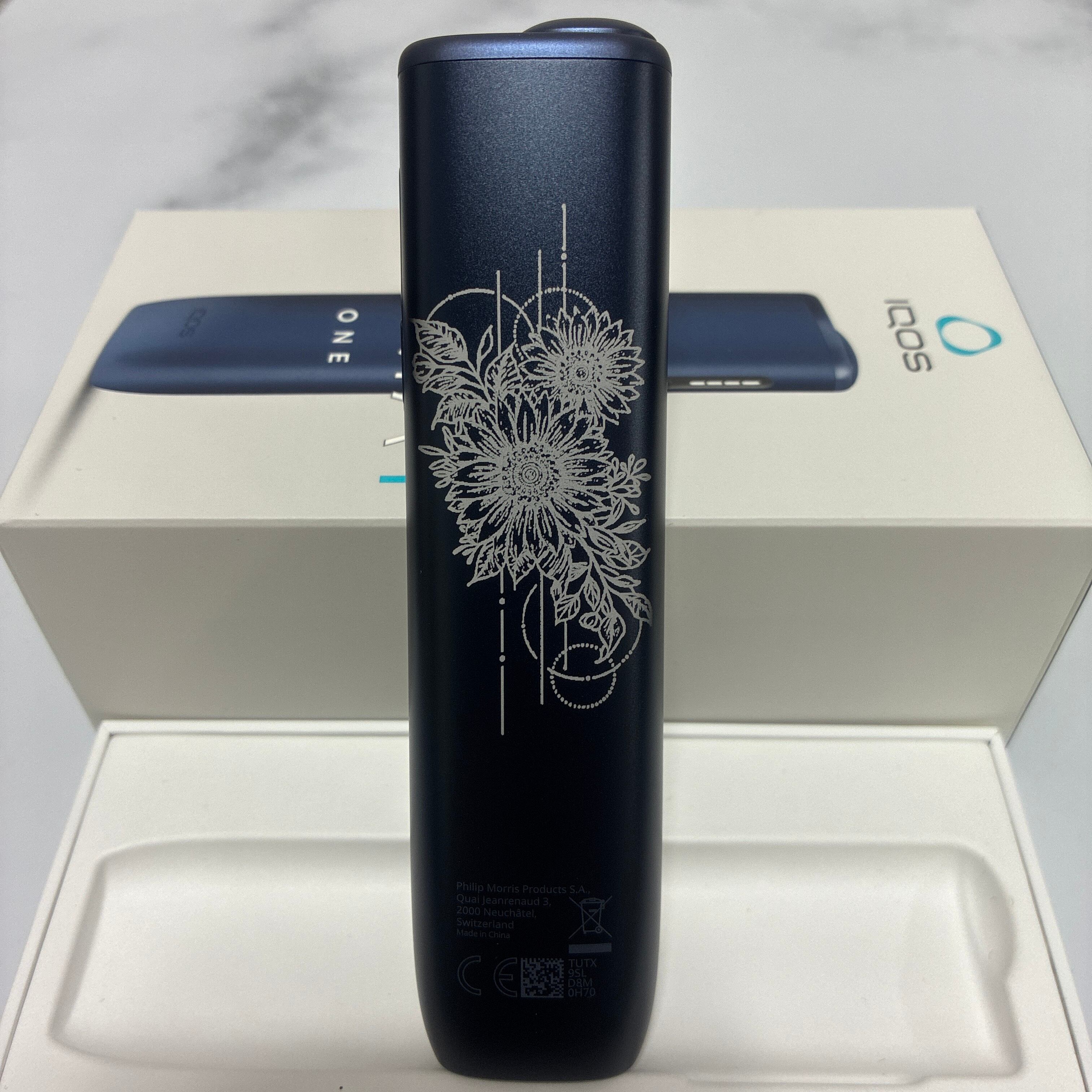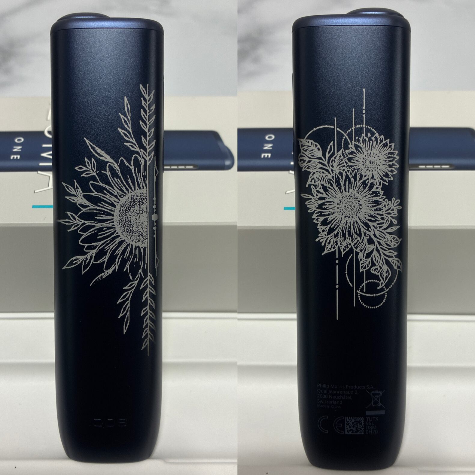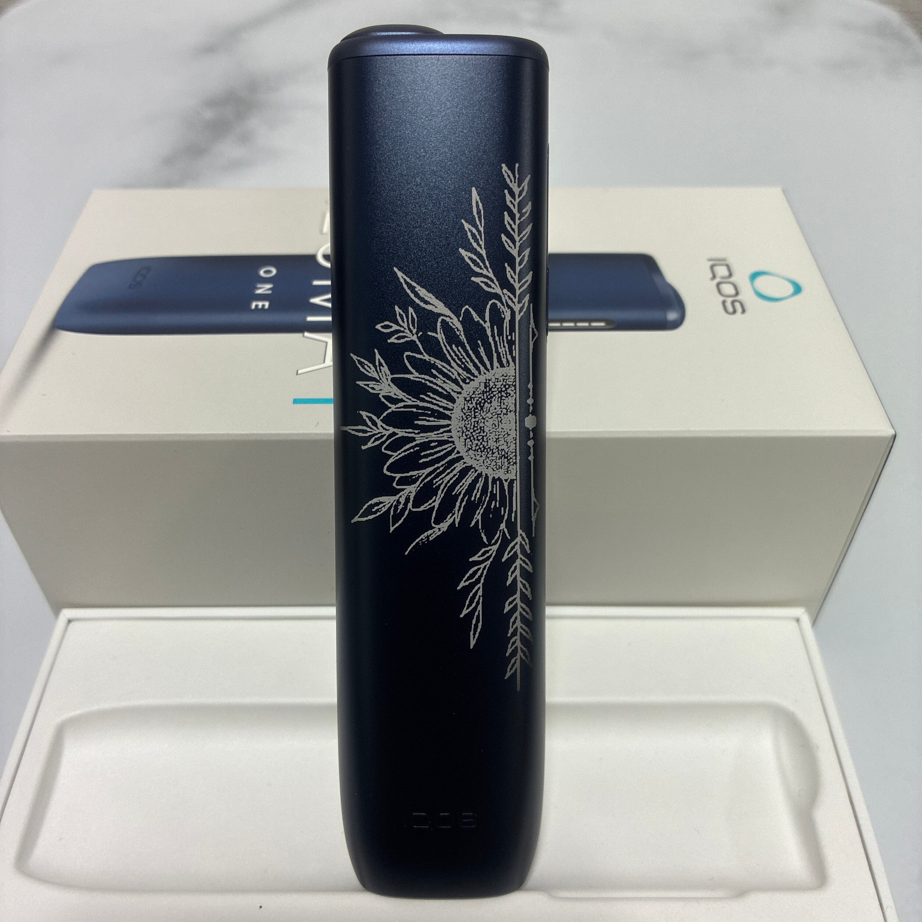 向日葵 タトゥー デザイン iQOS ILUMA i ONE アイコス イルマ iワン ミッドナイト ブラック 黒 ひまわり 新型 新品 未使用 送料無料 オリジナル カスタム
