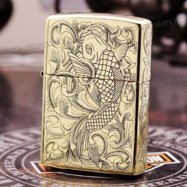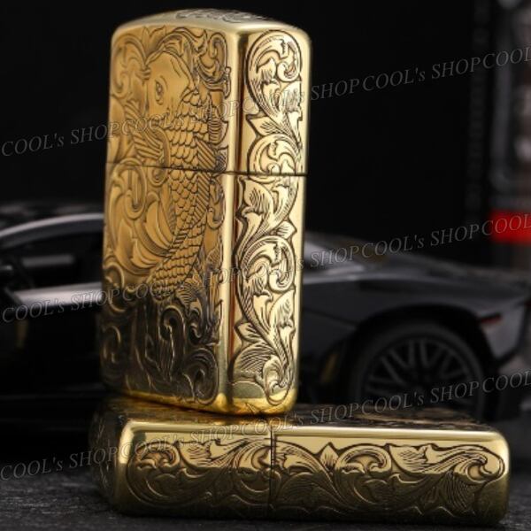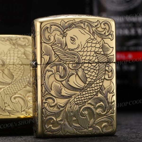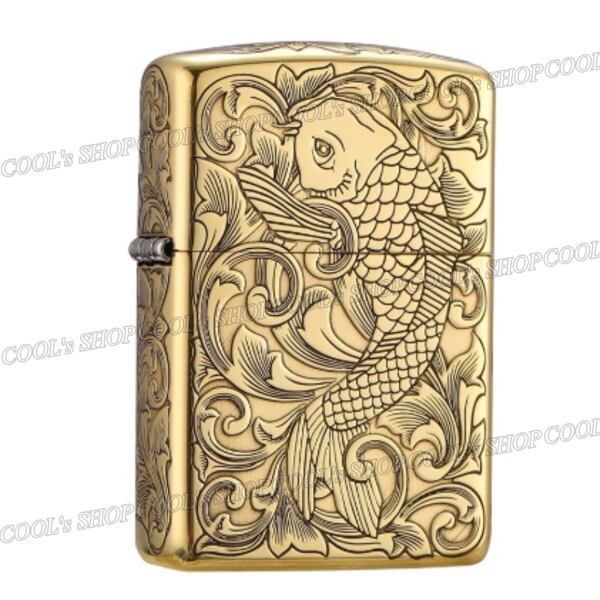 鯉 滝登り 五面総彫り 和彫り デザイン オイルライター ZORRO ゴールド ZIPPO同サイズ ジッポ ジッポー 父の日 プレゼント 送料無料