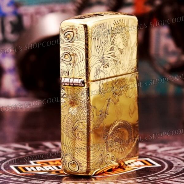 昇り龍 鳳凰 五面総彫り 和彫り デザイン オイルライター ZORRO ゴールド ZIPPO同サイズ ジッポ ジッポー 父の日 プレゼント 送料無料