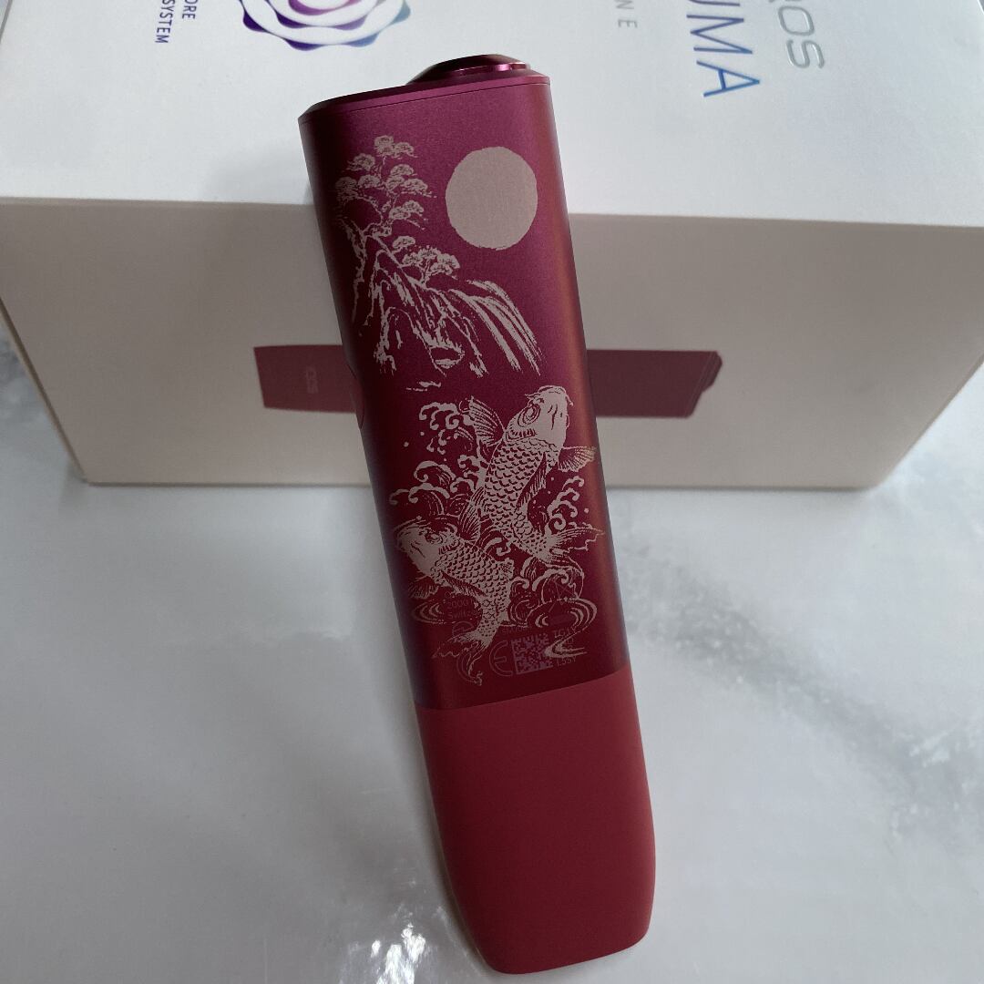iQOS ILUMA ONE アイコス イルマワン レーザー加工 鯉 滝登り 水墨画 赤 ピンク 和柄 和彫り コイ 恋 名入可能