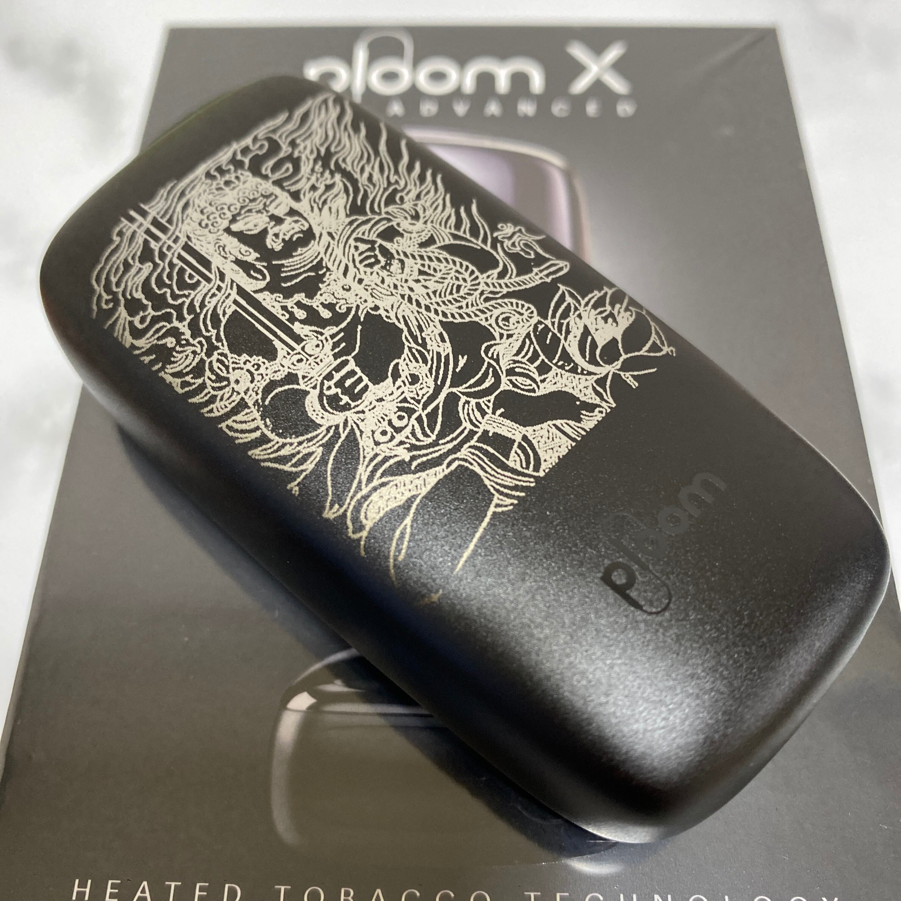 不動明王 デザイン レーザー加工 プルームエックス アドバンスド Ploom X ブラック 黒 和柄 和彫り 蓮 ハス 蓮子 梵字
