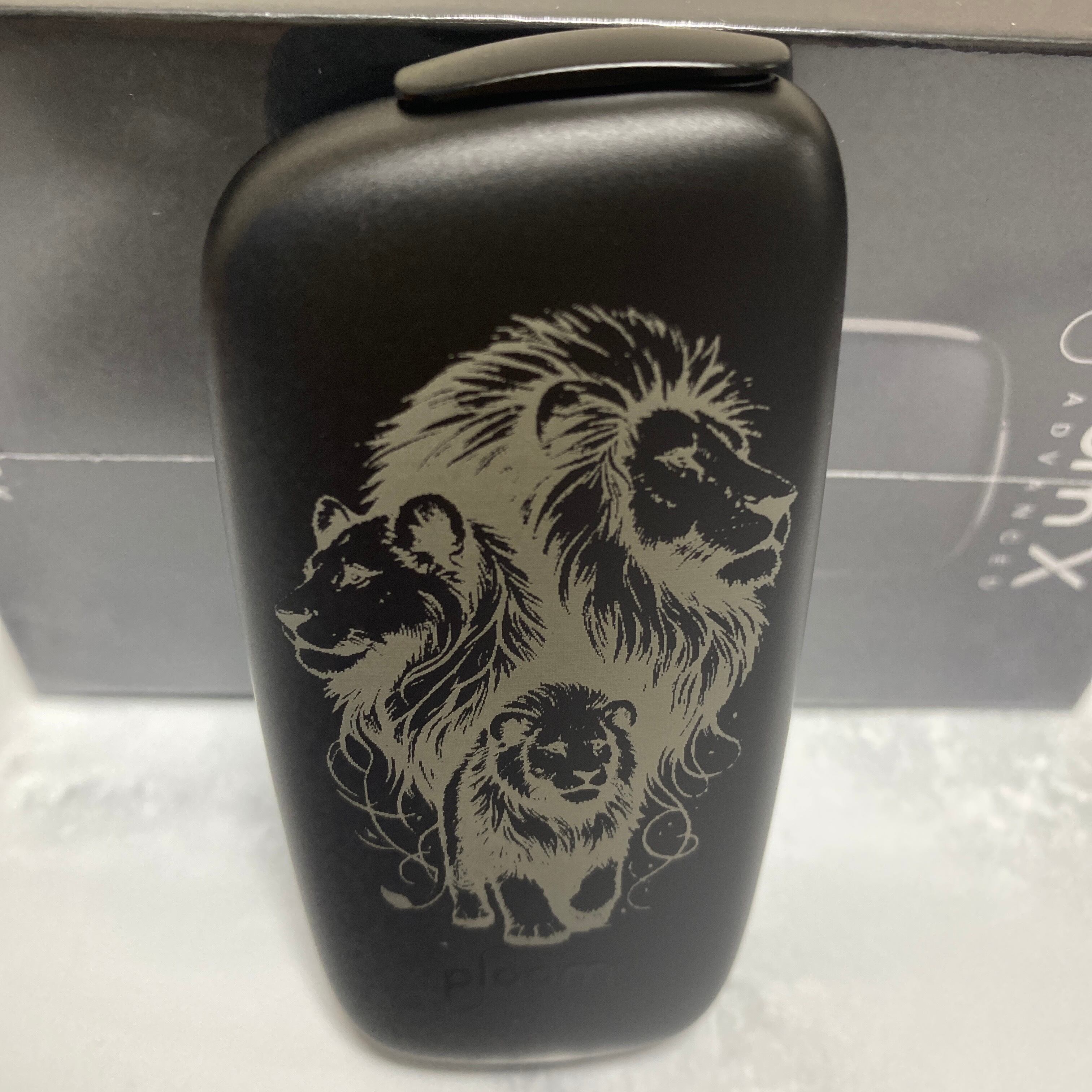 親子 ライオン デザイン レーザー加工 プルームエックス Ploom X アドバンスド 本体 ブラック 黒 百獣の王 家族 キング