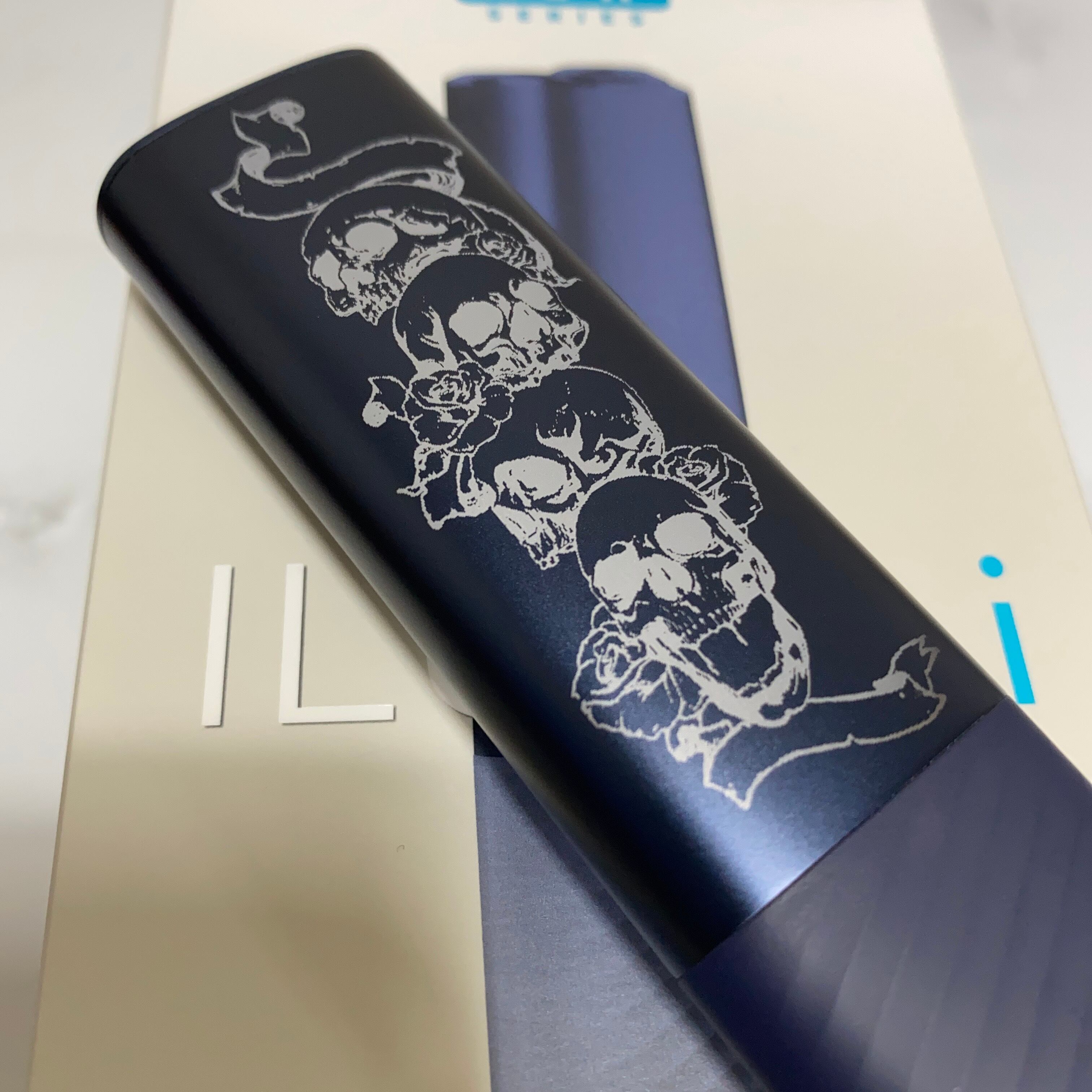 スカル デザイン レーザー加工 iQOS ILUMA i ONE アイコス イルマ i ワン ミッドナイトブラック 黒 ドクロ