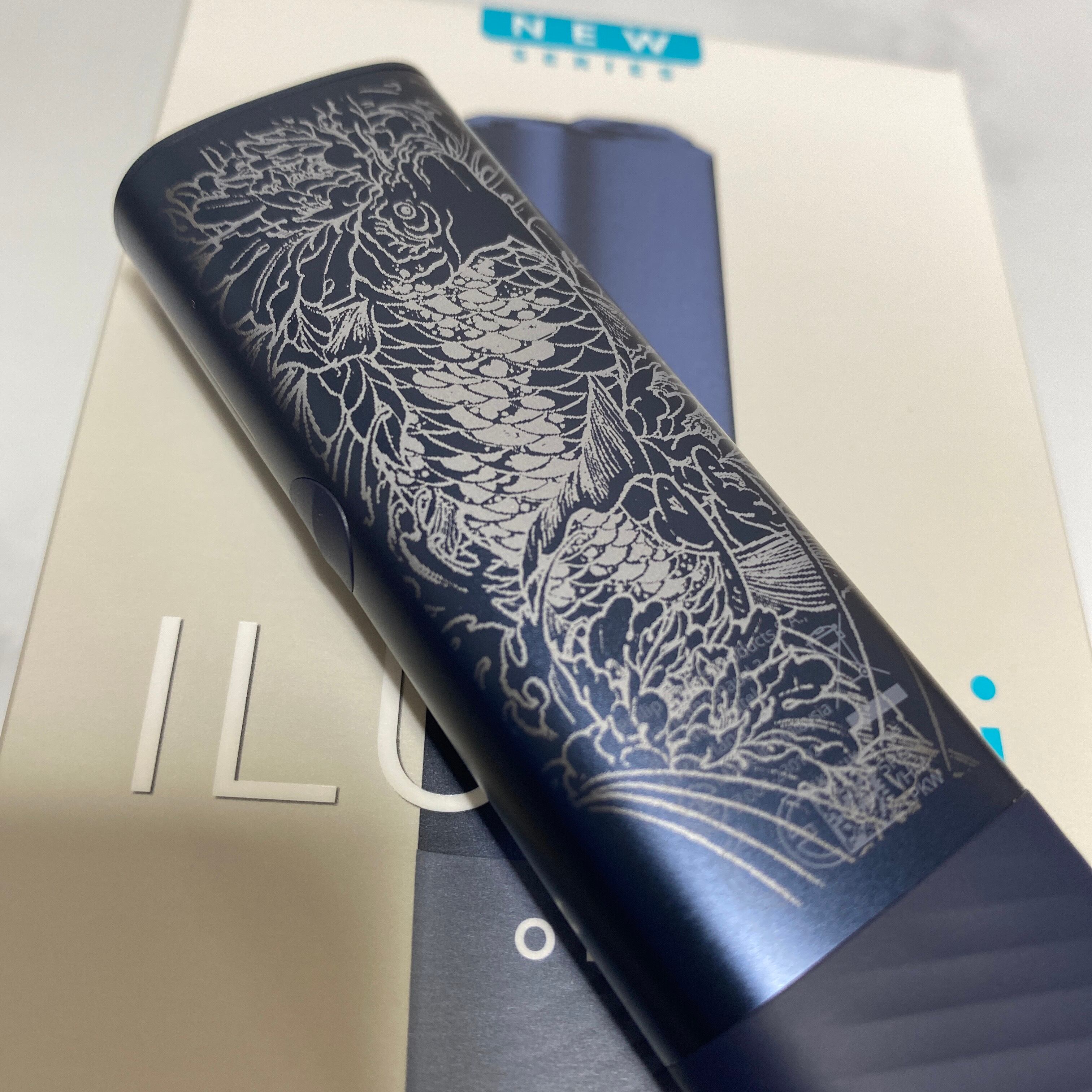 鯉 滝登り 菊 デザイン レーザー加工 iQOS ILUMA i ONE アイコス イルマ i ワン ミッドナイトブラック 黒