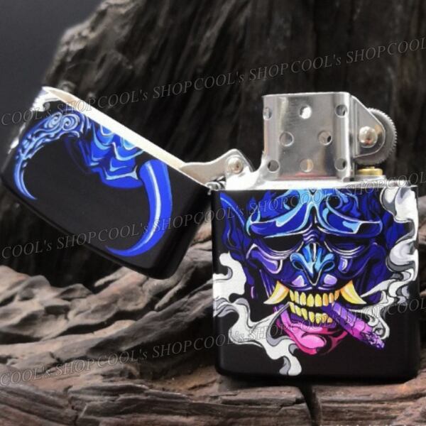 般若 フルカラー デザイン オイルライター ZORRO 両面デザイン zippo 同型 和柄 煙草 タバコ 喫煙 ブラック 黒