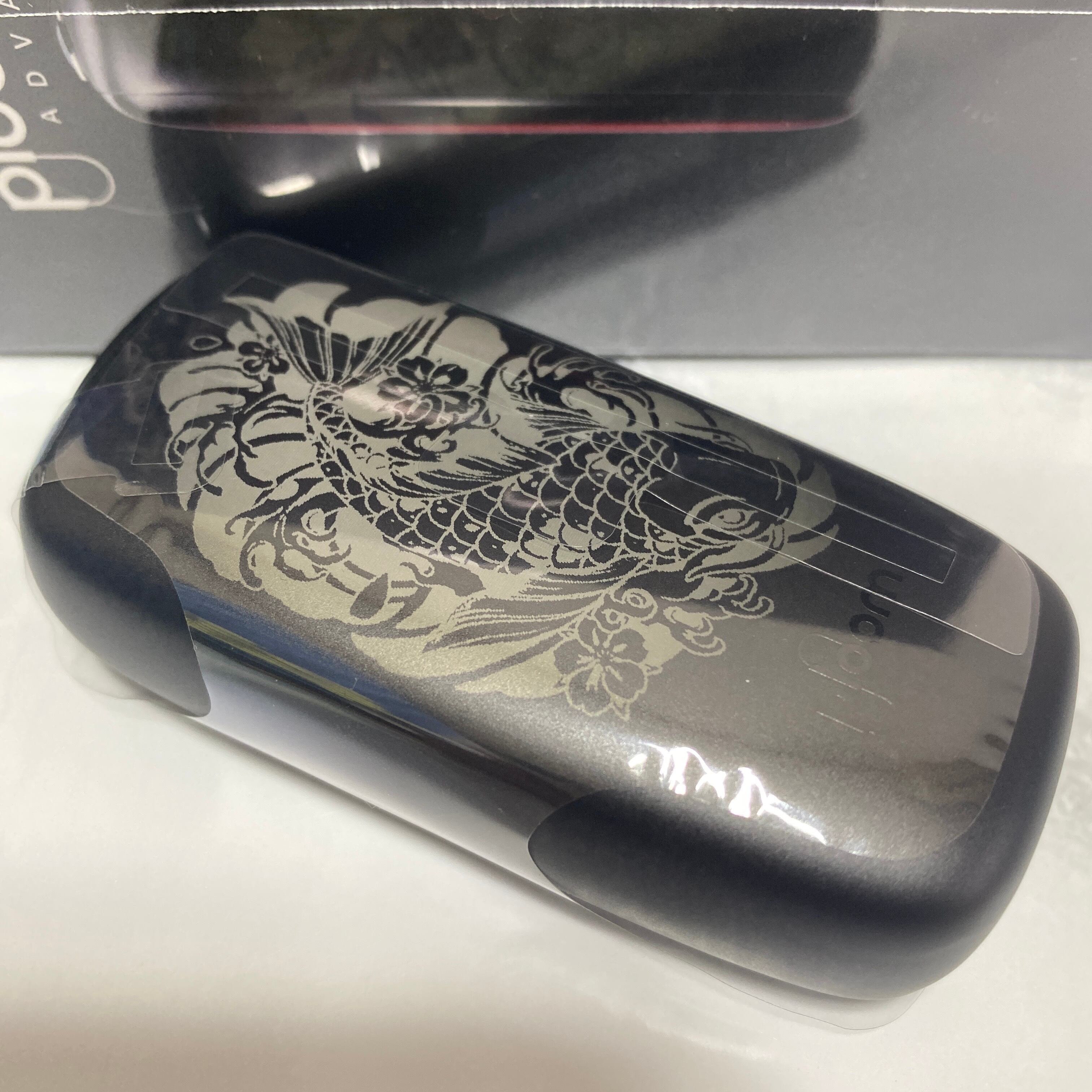 鯉 桜 波 デザイン レーザー加工 プルームエックス Ploom X アドバンスド 本体 新型 ブラック 黒 和柄 和彫り 額 新型 新品 未使用 送料無料 オリジナル カスタム