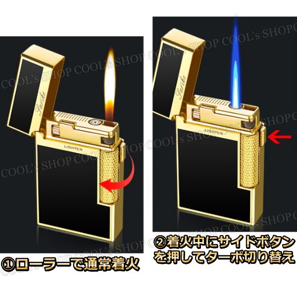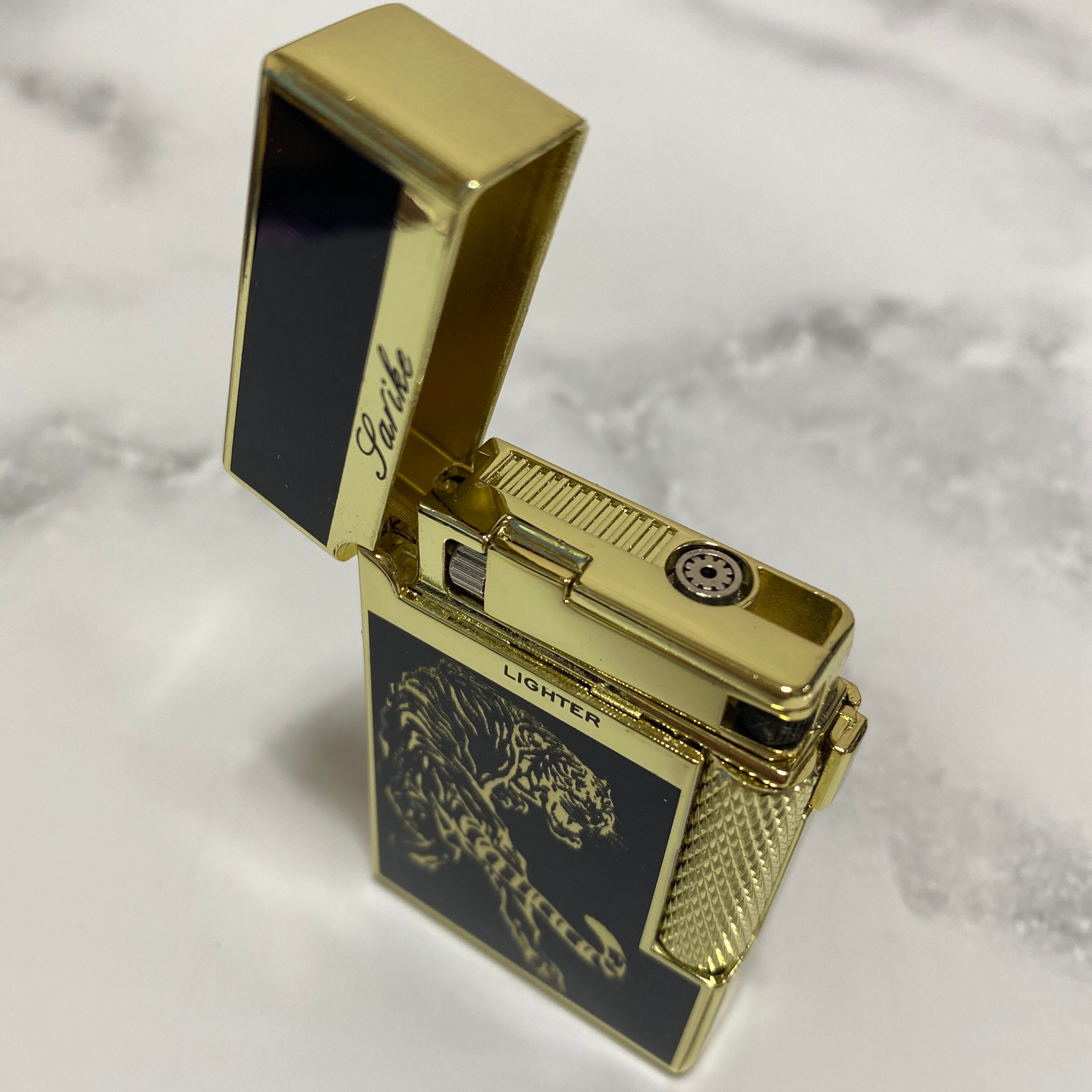 猛虎 デザイン ターボ切替え可能 ローラー着火 フリントガスライター ゴールド×ブラック金×黒 タイガー 虎 タトゥー 入れ墨