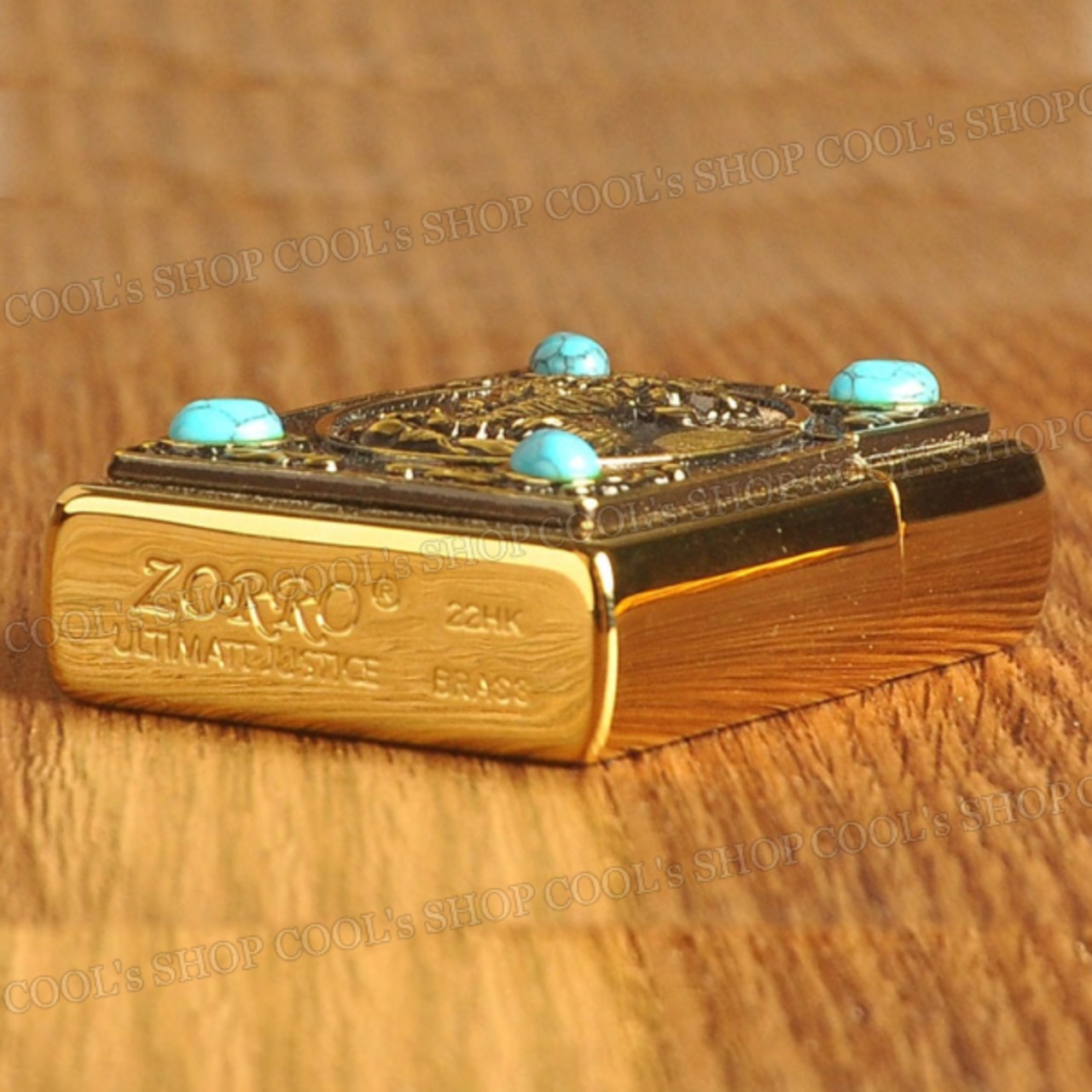 虎 ターコイズ エンブレム デザイン オイルライター ZORRO ゴールド 金 zippo 同型 タイガー 猛虎 紋章 オシャレ