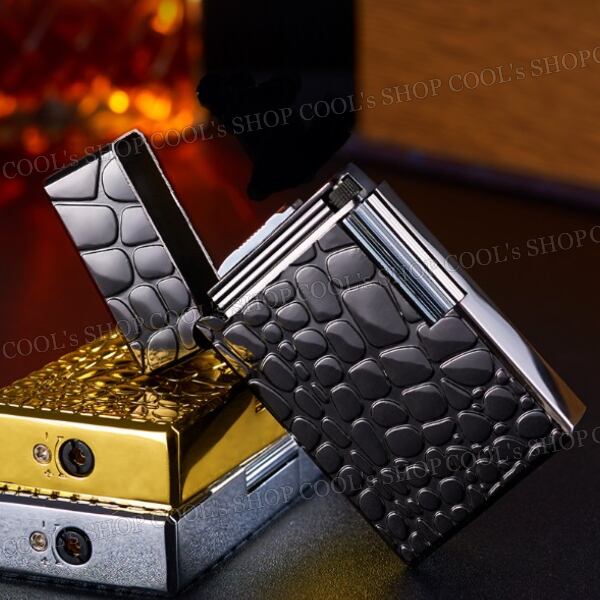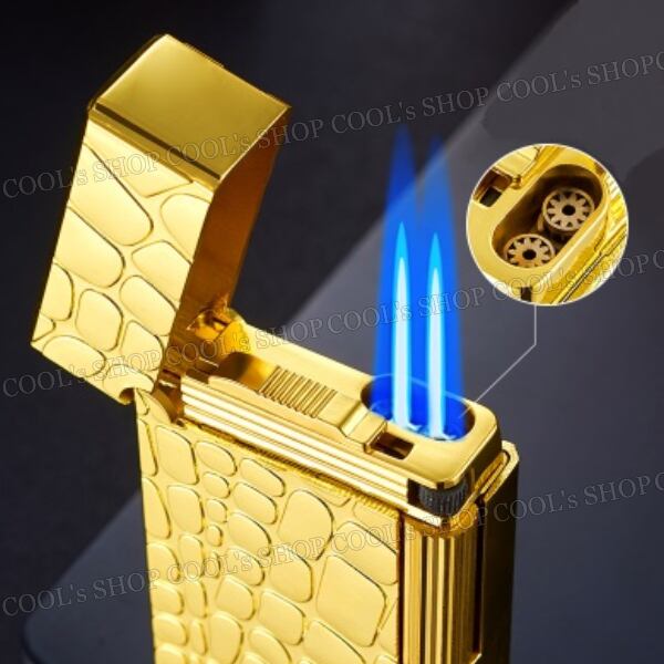 ゴールド クロコ デザイン ダブルターボ フリントガスライター ツインターボ 金 ダブルバーナー ダブルバナー ローラー 重厚