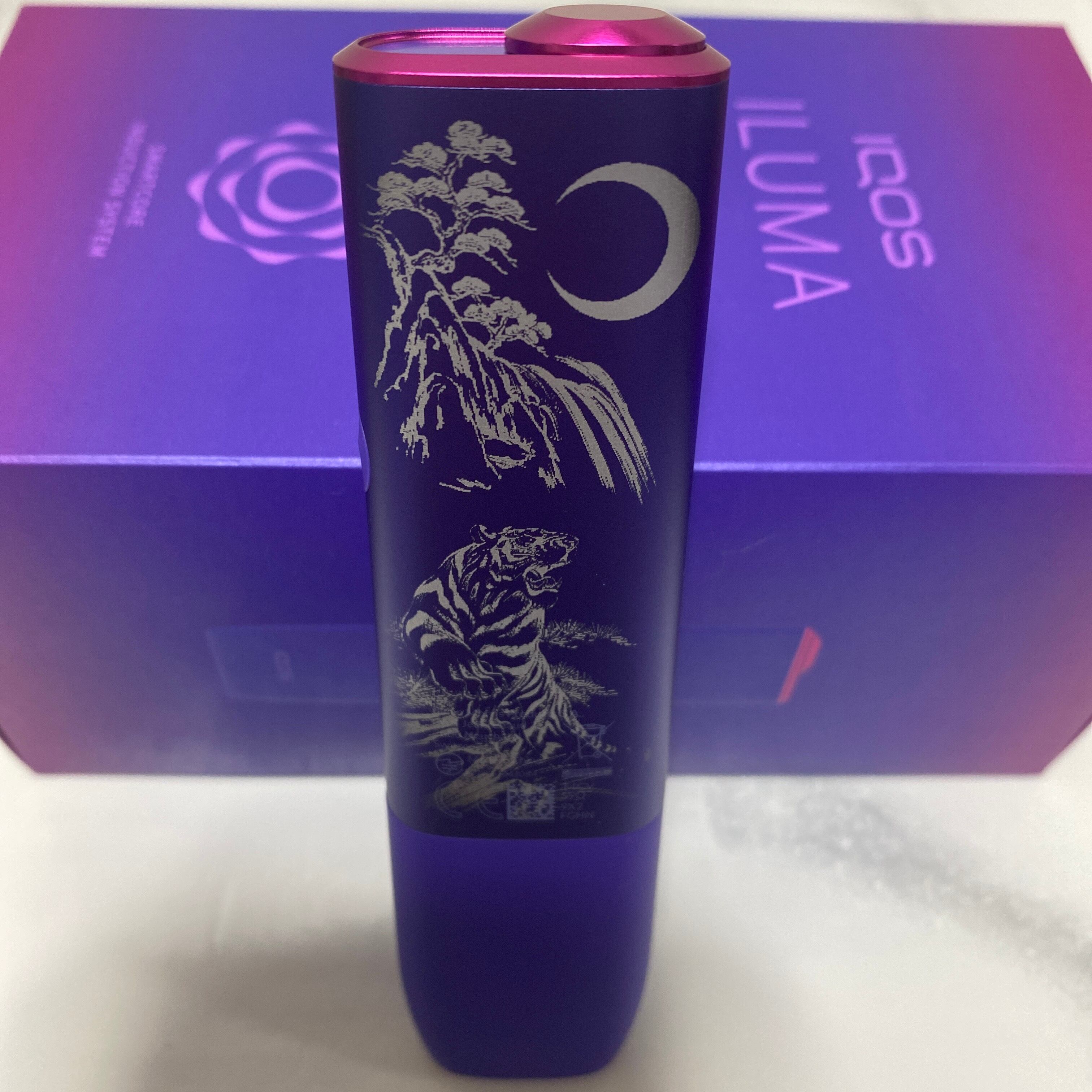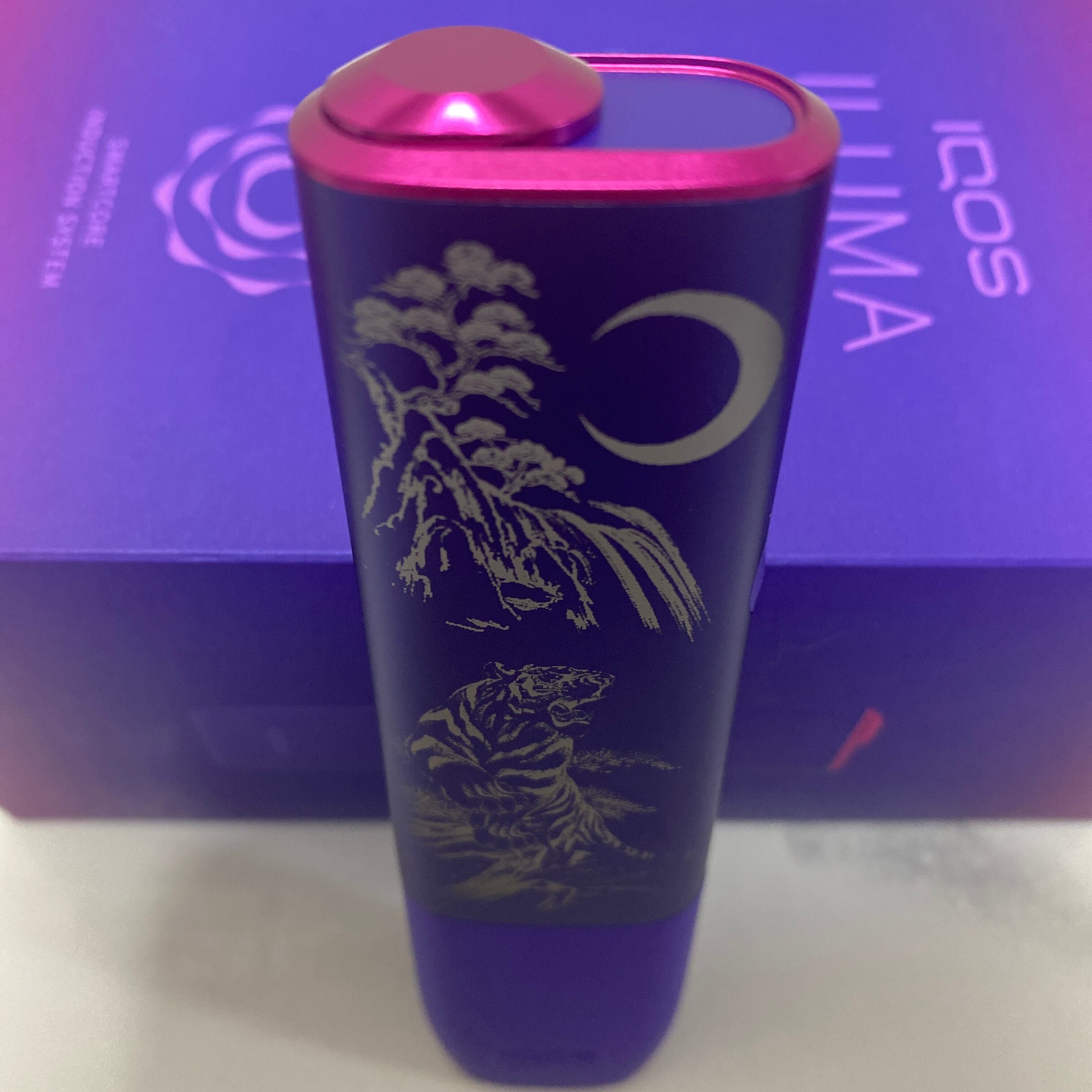 虎 三日月 デザイン レーザー加工 iQOS ILUMA ONE アイコス イルマ ワン ネオン パープル 紫 和柄 和彫り